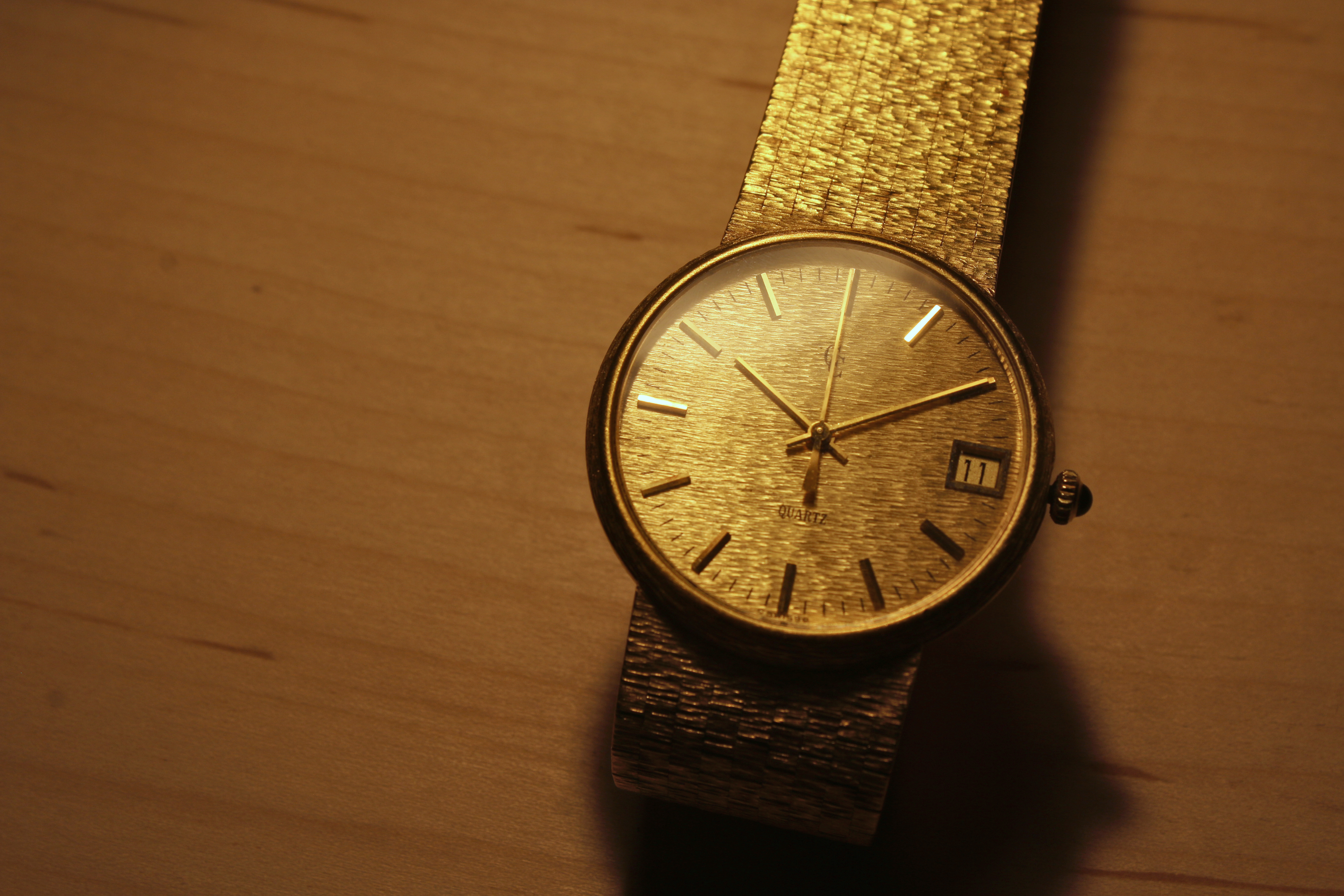 Last is an old Swiss quartz watch that my father inherited. It is from the very early days of Swiss companies embracing quartz movements, and as such it is difficult to find a replacement. Fortunately, the movement was manufactured by a very large Swiss manufacturer, so it's not impossible to find a replacement. I was able to source a replacement movement, it was expensive and was labeled as "working, but a service is recommended". Maybe at some point I will service it. There was one problem, though. The OEM date wheel was a gold-tone, to match the dial, and the replacement had a standard white date wheel. I had to swap them, which added quite a bit of complexity to the operation. Removing the date wheel from the movment consisted of removing 2 small plates, secured with tiny screws. In the end, I am quite satisfied with the result.